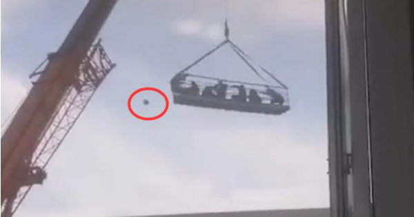 近日,河北唐山某建筑工地,吊车赶上大风天气作业送7名工人往高空施工,突然大风吹来吊篮在空中旋转如陀螺,吊篮在风中呈360度旋转,极度危险。