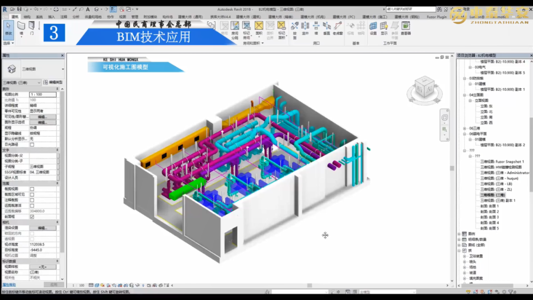 利用BIM软件的碰撞检查功能,对各专业模型进行碰撞检查,并导出碰撞报告,然后对碰撞点进行管综优化和净高分析,并用优化后的模型指导现场施工,减少返工,节约成本。